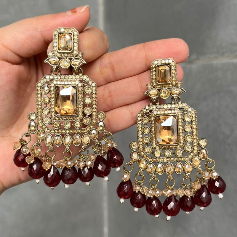 Aadikha Reverse AD Jhumka Earrings (Maroon)