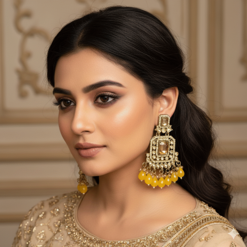Aadikha Reverse AD Jhumka Earrings (Yellow)