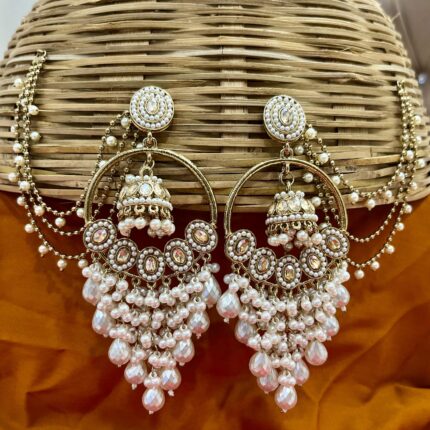 Zinhal Jhumka With Kaanchain (White)