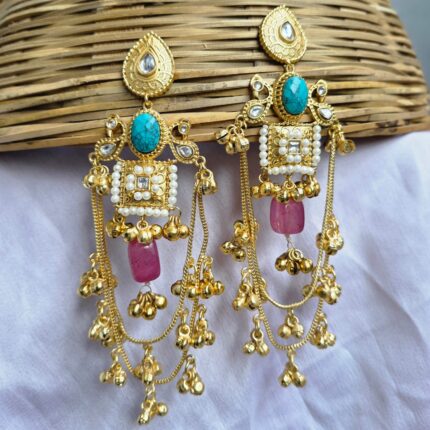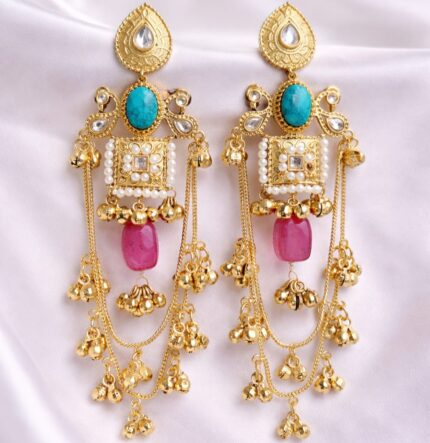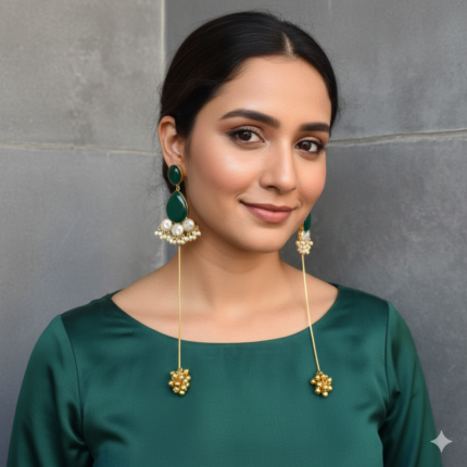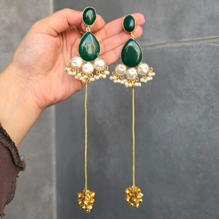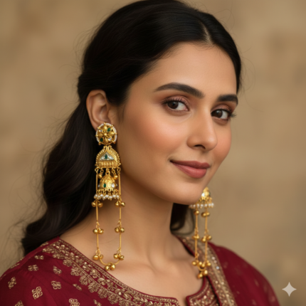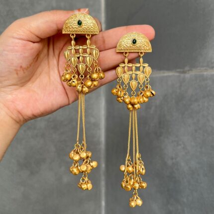Maheera Gold Brass Kashmiri Jhumka (Green)