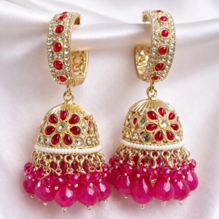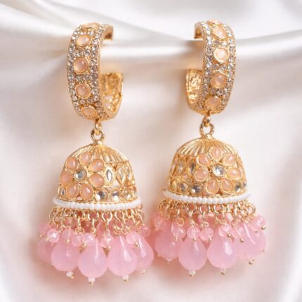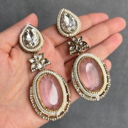 Tanshika Premium Designer Zircone Polki Dupe Earrings (Baby Pink)