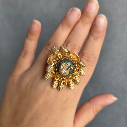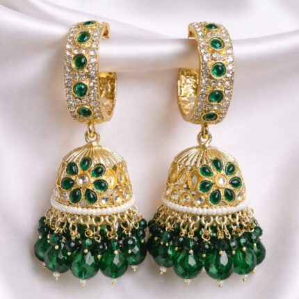Tanshika Premium Designer Zircone Polki Dupe Earrings (Dark Green)