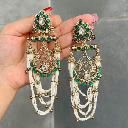 Trishna Reverse AD Jhumka with Mangtika (White)
