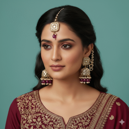 Preetika Jhumka with Mangtika (Rani Pink)