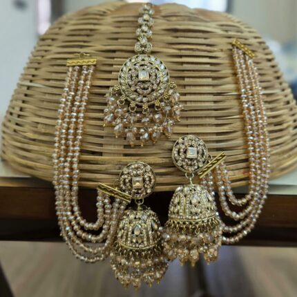 Prachi Reverse AD Jhumka Earrings with Sahaara & Mangtika (Golden)