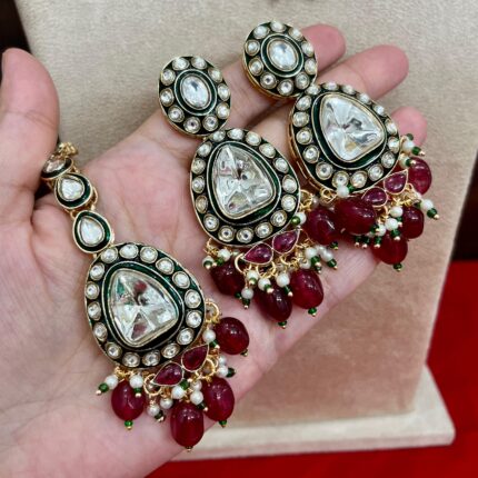 Malar Kundan Polki Necklace Set (Pastel Pink)