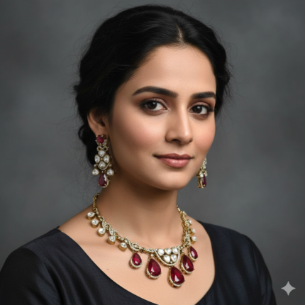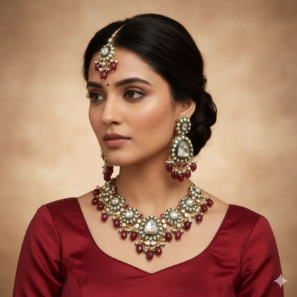 Malar Kundan Polki Necklace Set (Ruby)