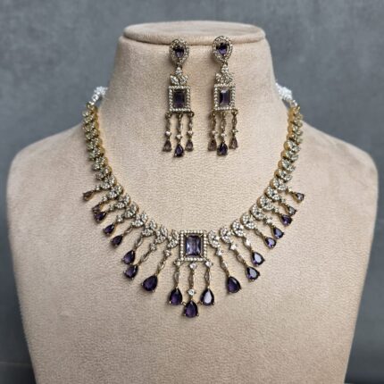 Lubana AD Necklace set – Mehendi Polish (Purple)
