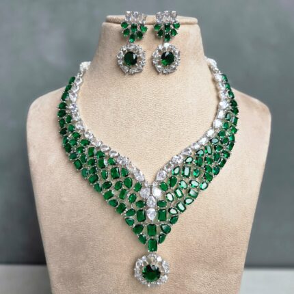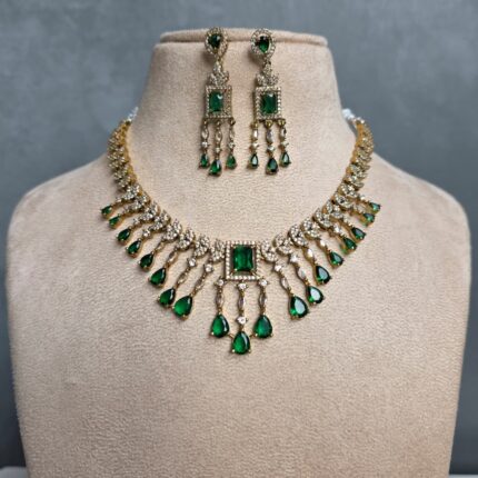 Madhura Moissianite Necklace with Duplet Stones (Emerald Green)