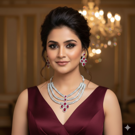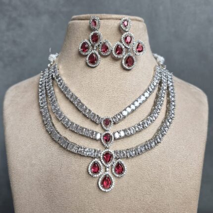 Nyra 3 Layer AD Necklace Set (Ruby Red)