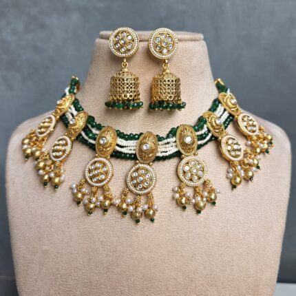 Ritika Kundan Necklace Set (Green)