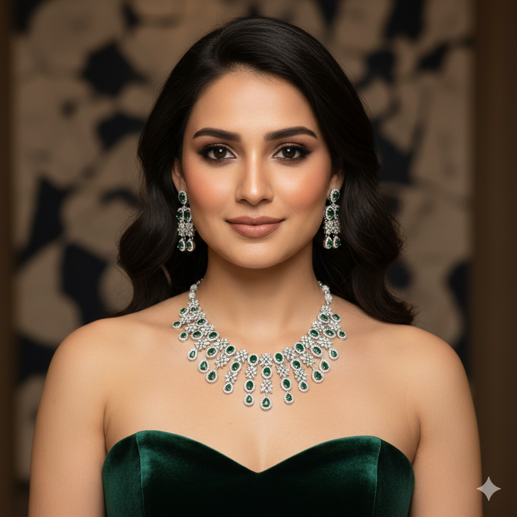 Home All Products Daisy AD Necklace Set (Green)