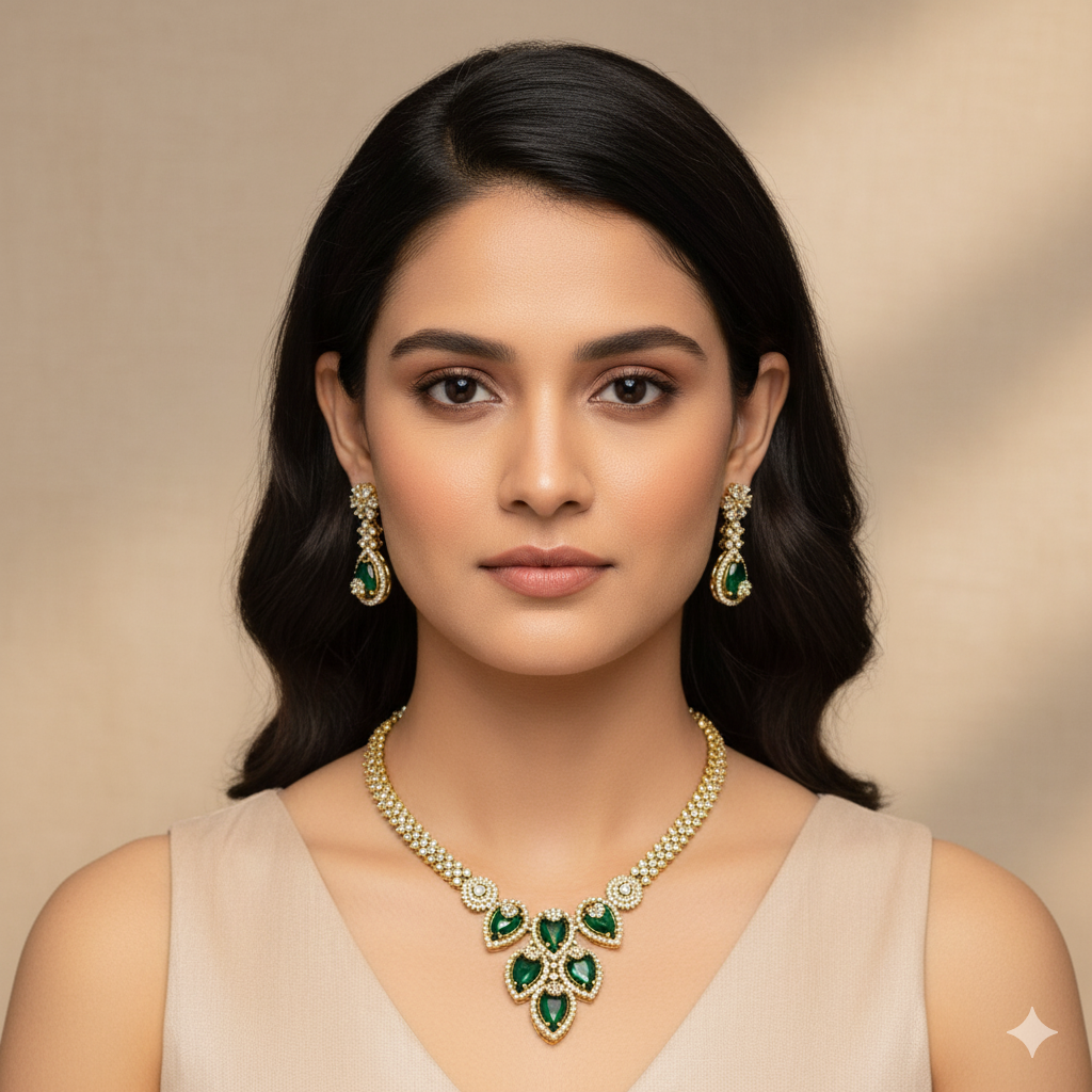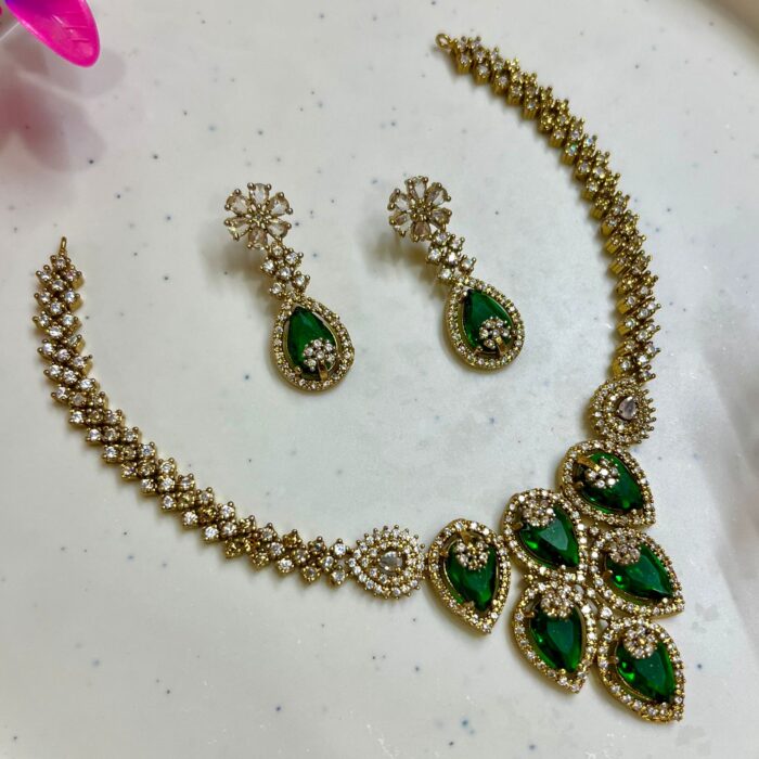 Divya AD Necklace Set – Mehendi Polish (Green)