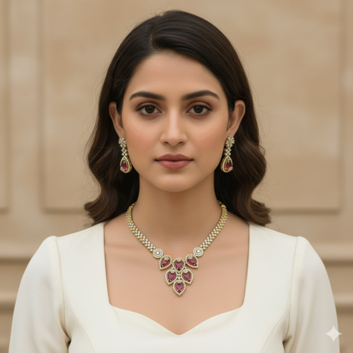 Divya AD Necklace Set – Mehendi Polish (Ruby Red)