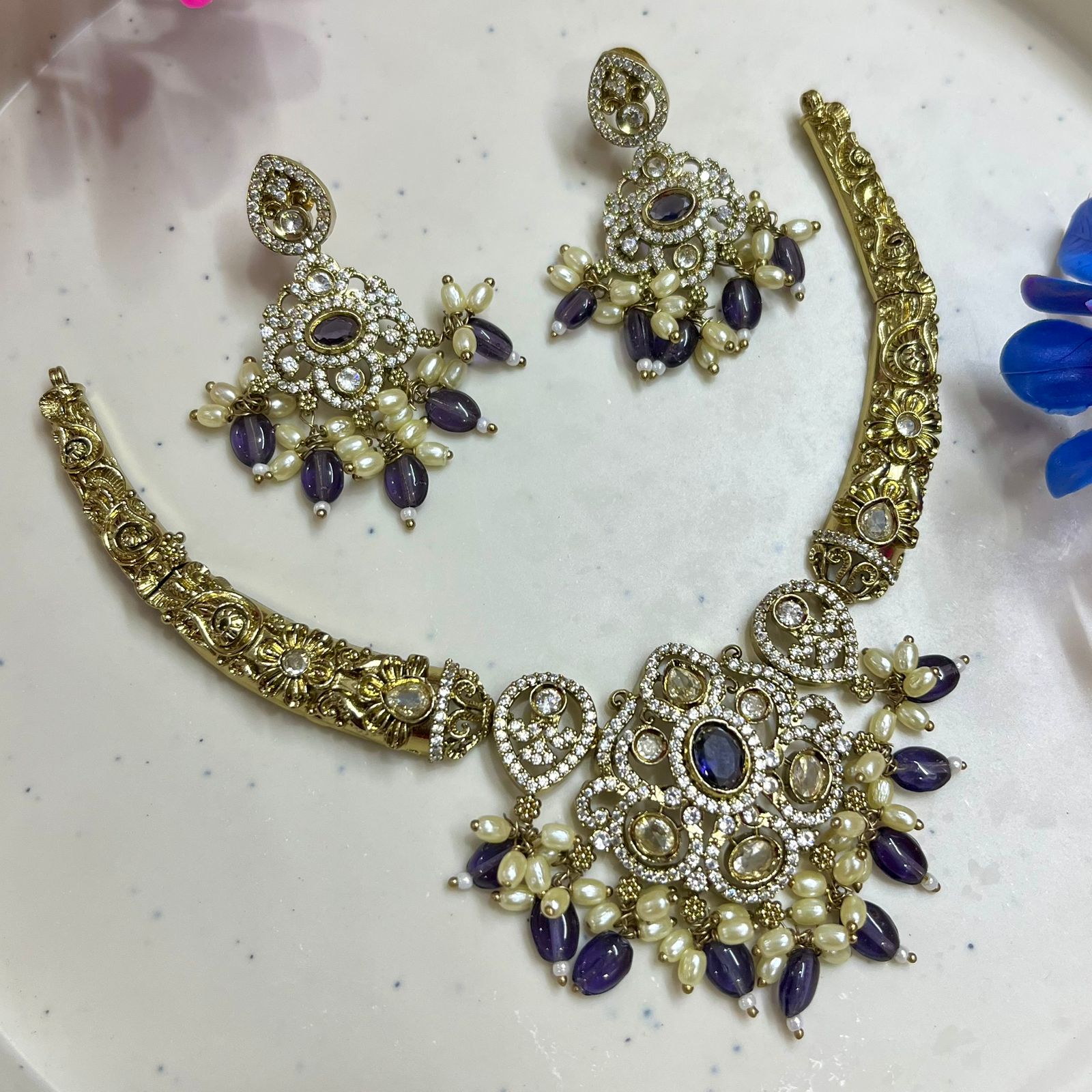 Home All Products Drithi AD Necklace Set – Mehendi Polish (Purple)