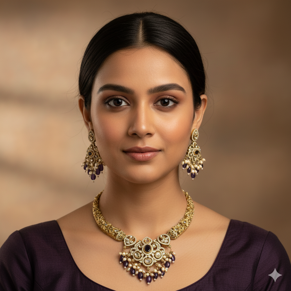 Drithi AD Necklace Set – Mehendi Polish (Purple)