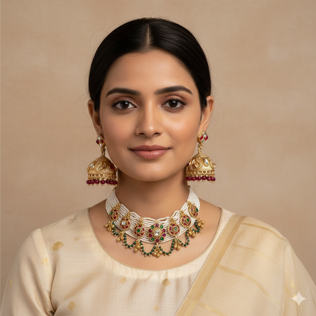 Vastu Premium Kundan Choker Set (Dark Green) ₹2,500.00 Original price was: ₹2,500.00.₹1,495.00Current price is: ₹1,495.00.