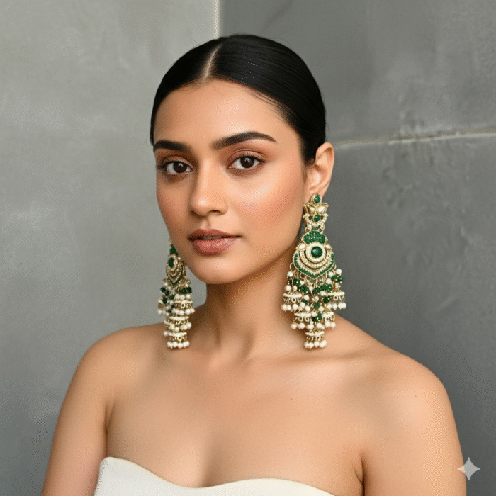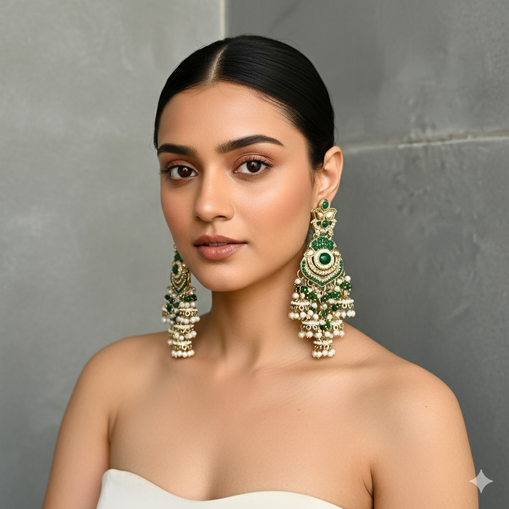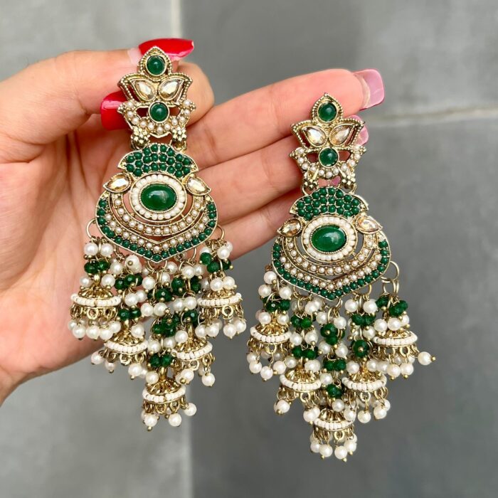 Home All Products Heer Pearl Jhumka Earrings (Green)
