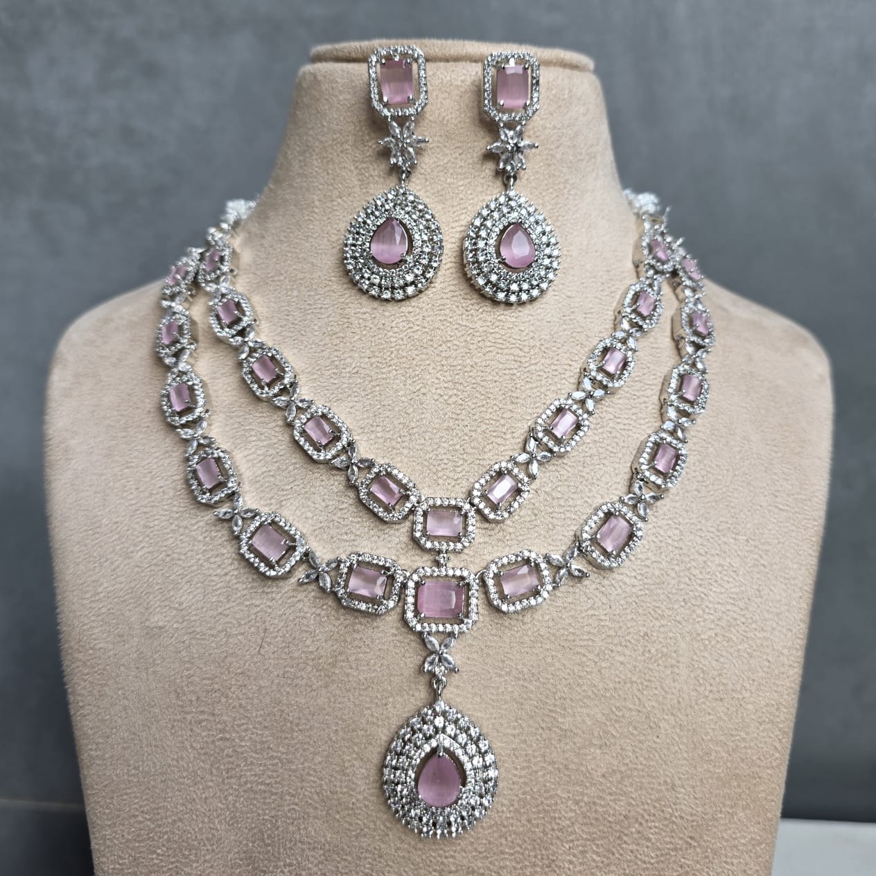 Home All Products Jippa Semi 2 Layer AD Necklace Set (Pastel Pink)