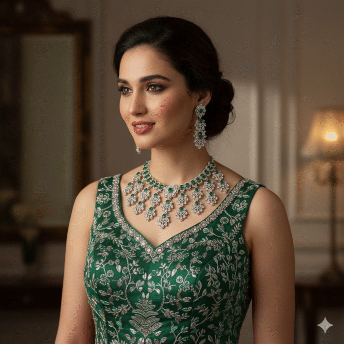 Karishma Statement AD Necklace Set (White) ₹2,000.00 Original price was: ₹2,000.00.₹1,480.00Current price is: ₹1,480.00.