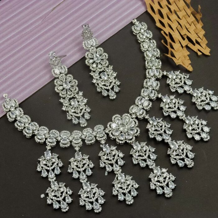 Karishma Statement AD Necklace Set (White)