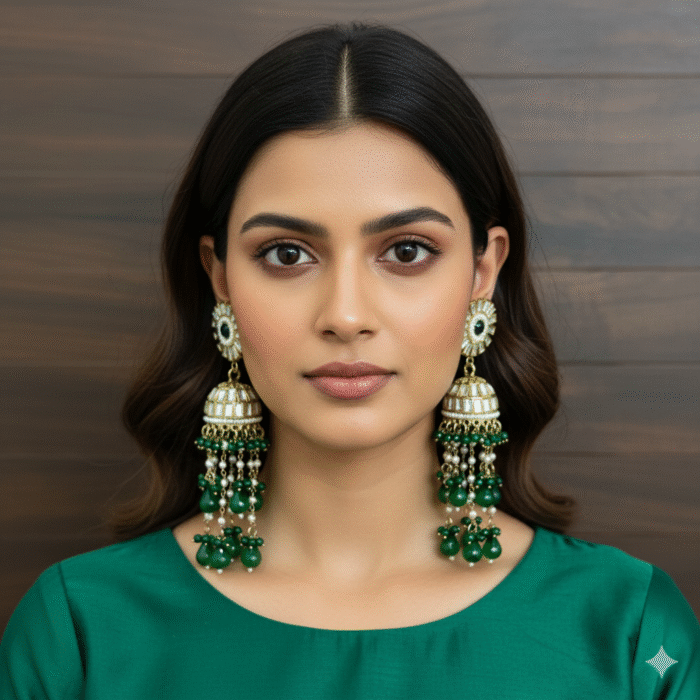 Jaspreet Jhumka with Mangtika (Red & Green)