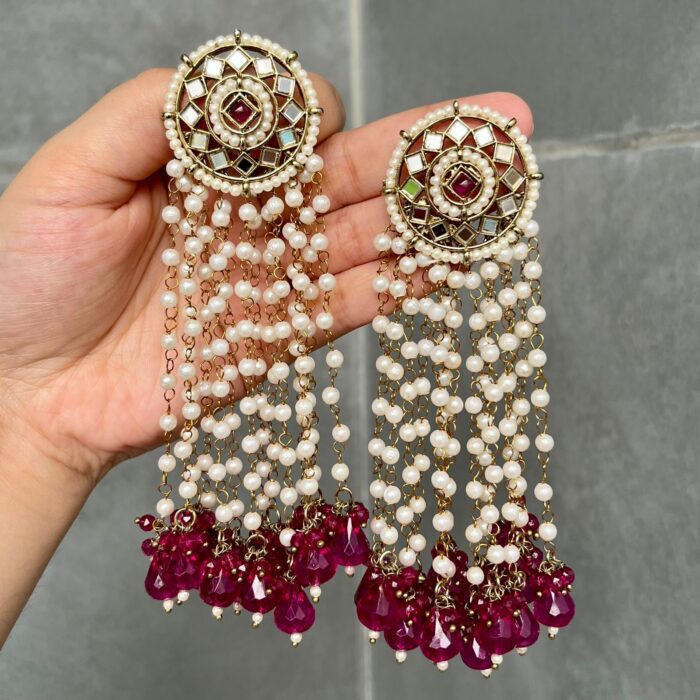 Khush Jhumka Earrings (Rani Pink)