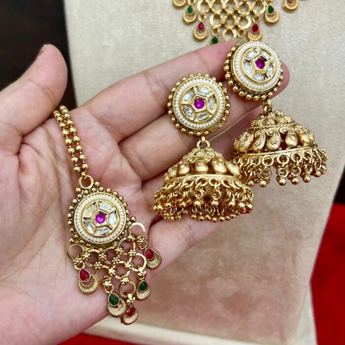 Sajna Premium High Gold Polish Rajwadi Jhalar Necklace ₹2,500.00 Original price was: ₹2,500.00.₹1,650.00Current price is: ₹1,650.00.