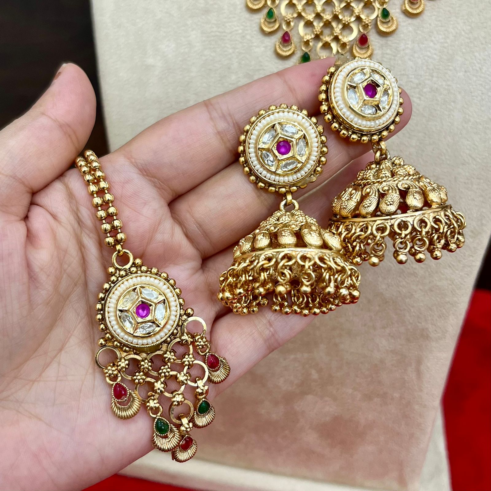 Home All Products Minakshi Premium High Gold Polish Rajwadi Jhalar Necklace
