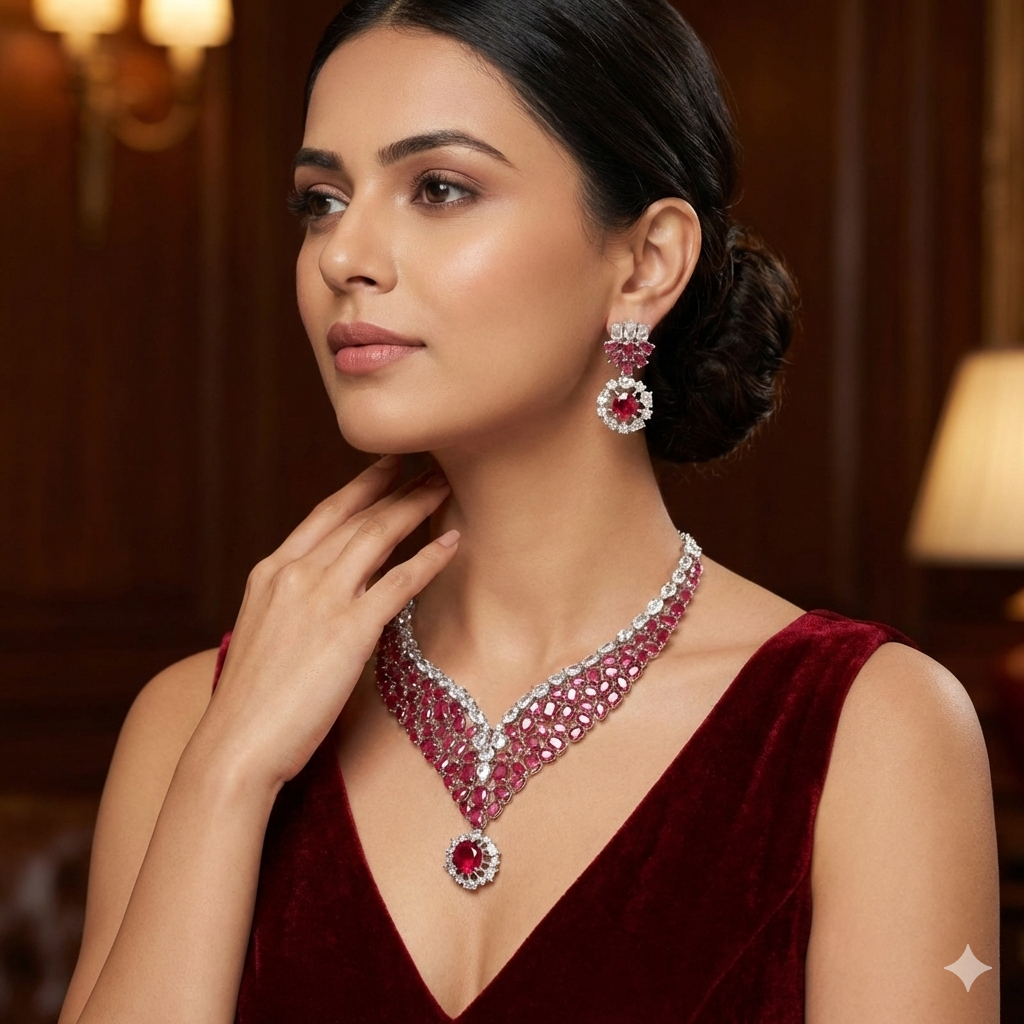 Home All Products Mirula AD Choker NeckSet (Ruby Red)