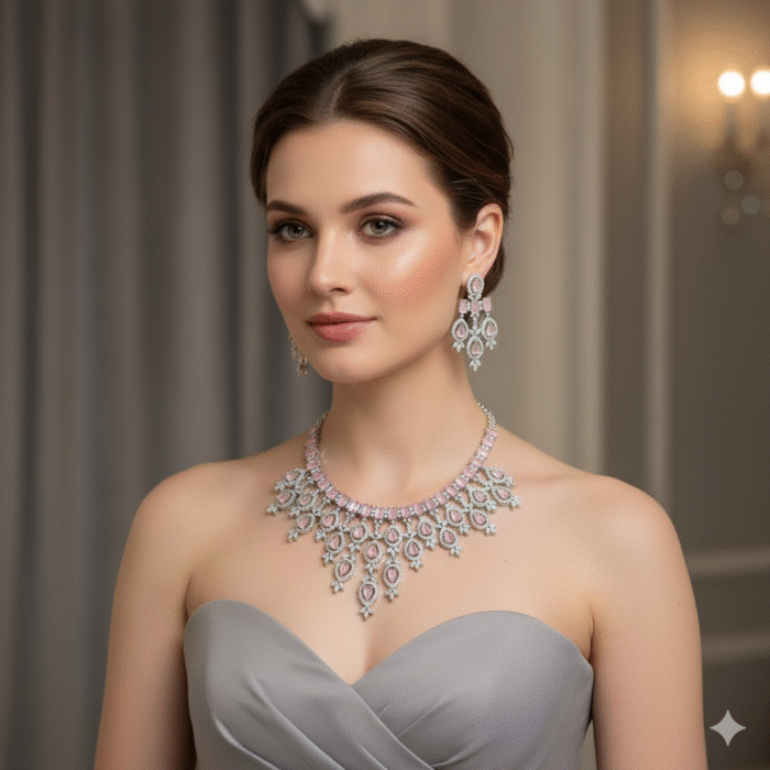 Home All Products Miyara AD Necklace (Pastel Pink)