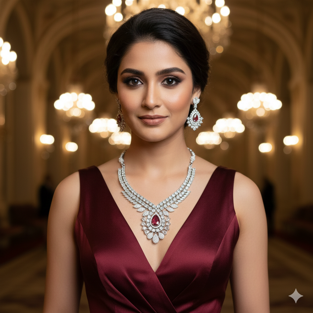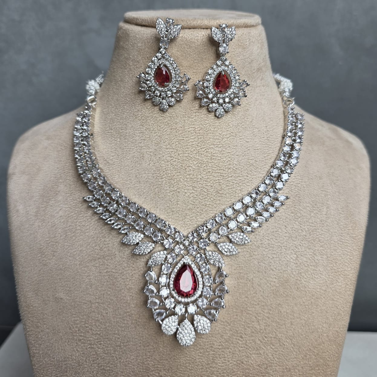 Home All Products Mona AD Necklace Set (Ruby Red)