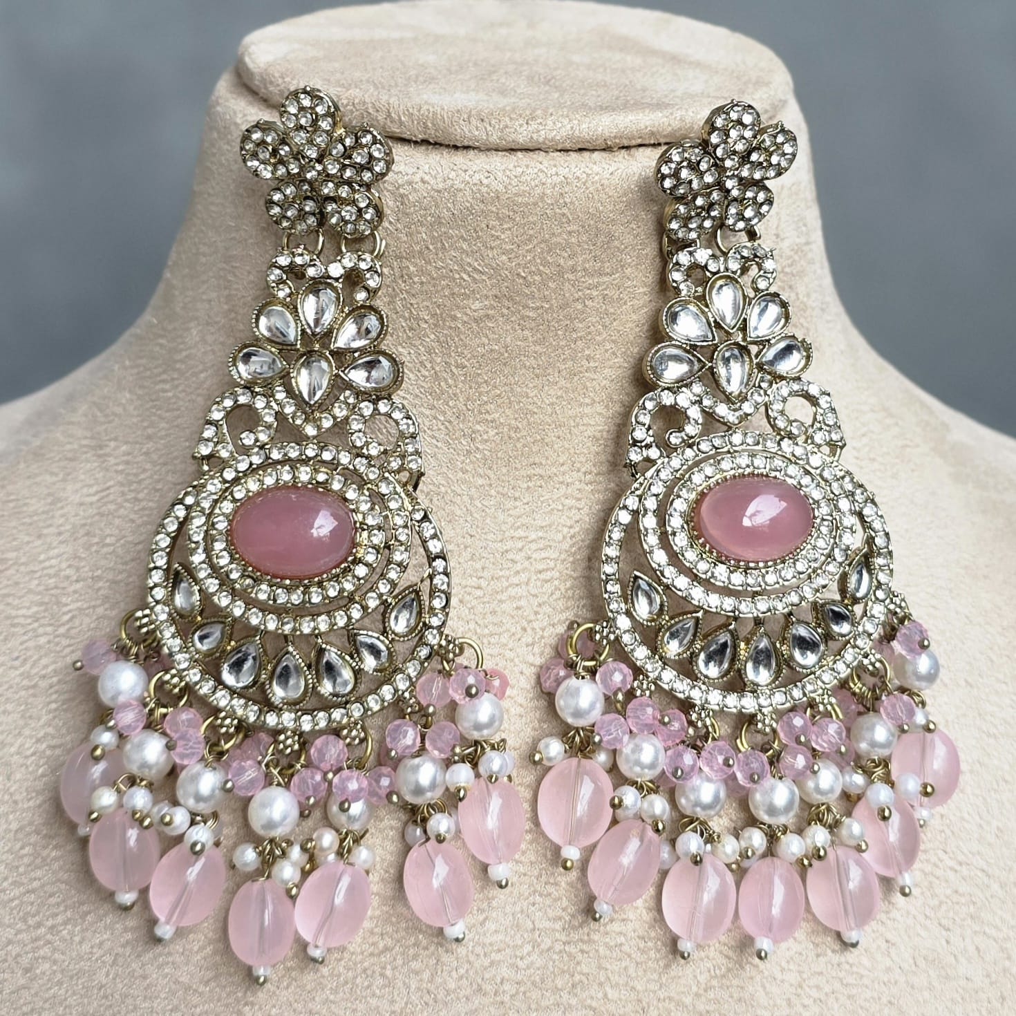 Natasha Designer Chandbali Earring (Baby pink)