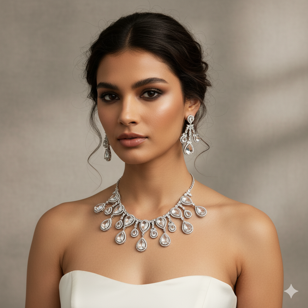Home All Products Nilima Premium AD Necklace Set ( White )