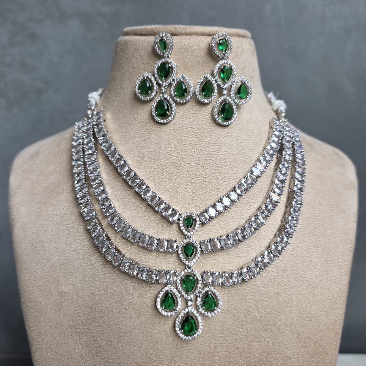 Nyra 3 Layer AD Necklace Set (Green)