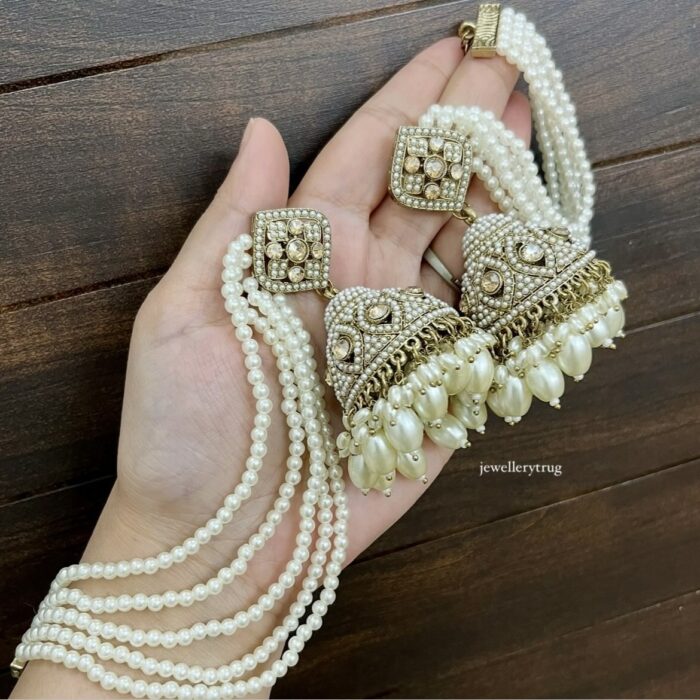 Jaspreet Jhumka with Mangtika (White)