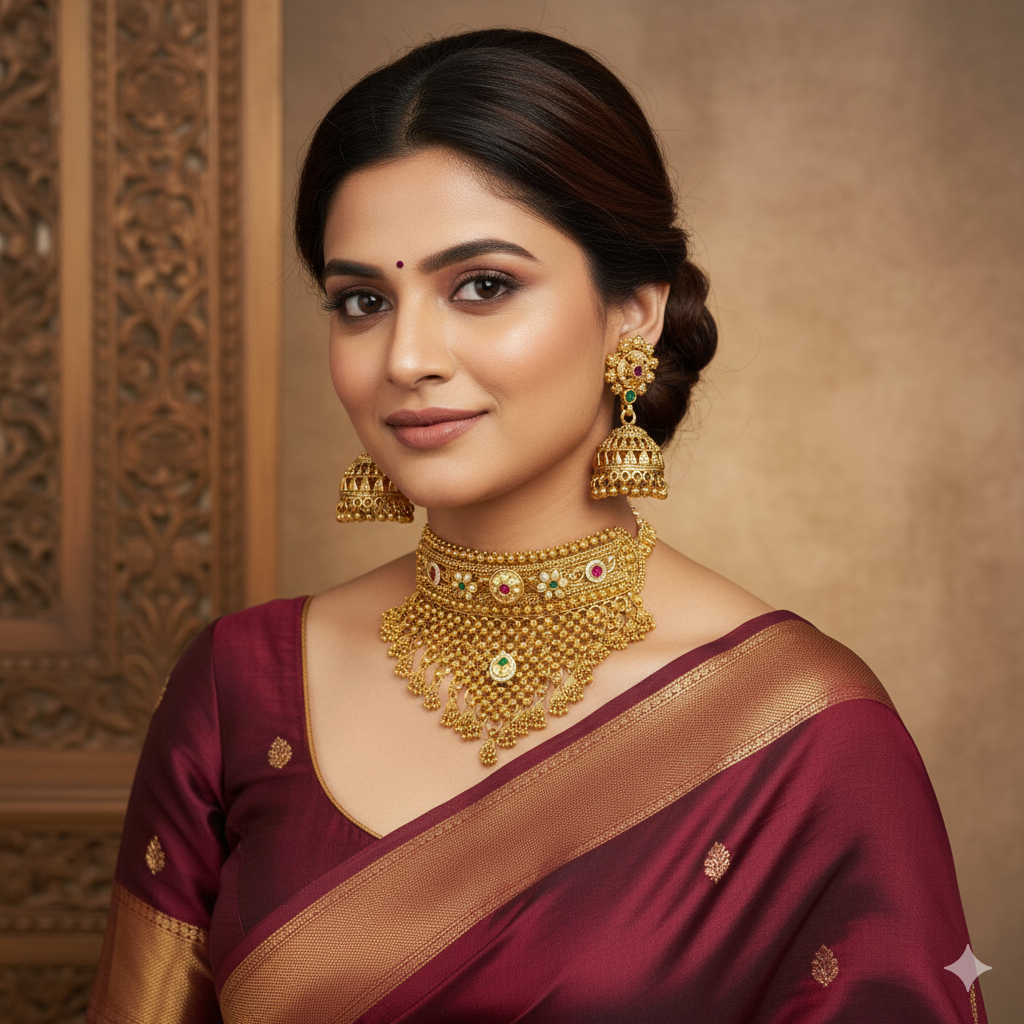 Vidya Premium High Gold Polish Rajwadi Jhalar Necklace ₹2,500.00 Original price was: ₹2,500.00.₹1,650.00Current price is: ₹1,650.00.