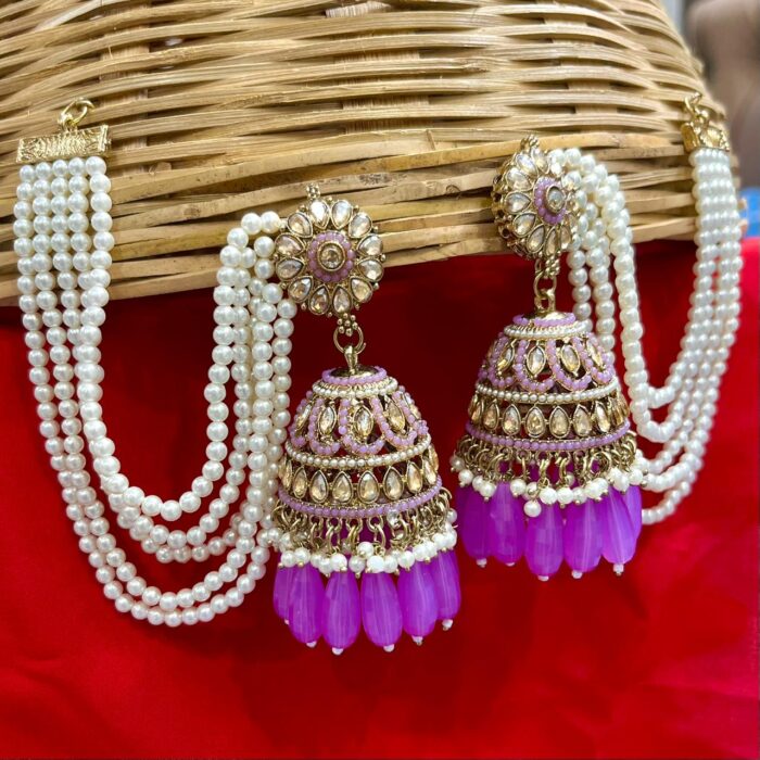 Sheena Jadau Reverse AD Jhumka with kaanchain (Lavender)