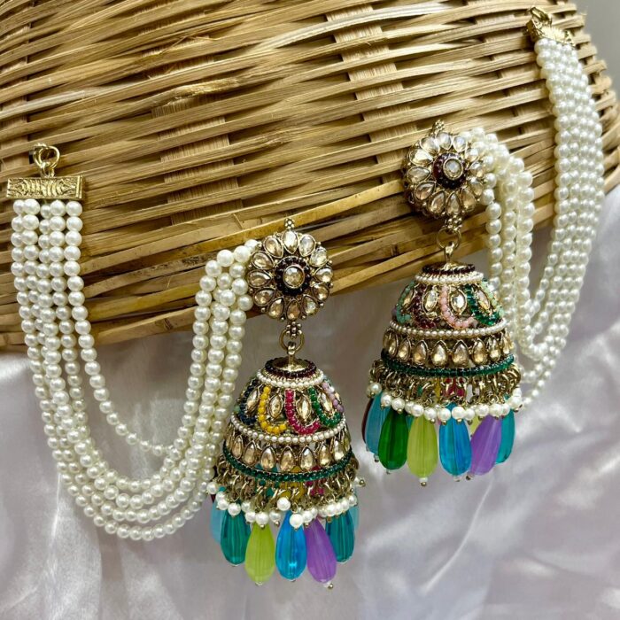 Sheena Jadau Reverse AD Jhumka with kaanchain (Multicolour)