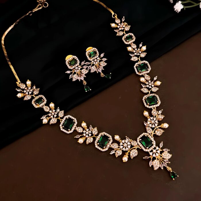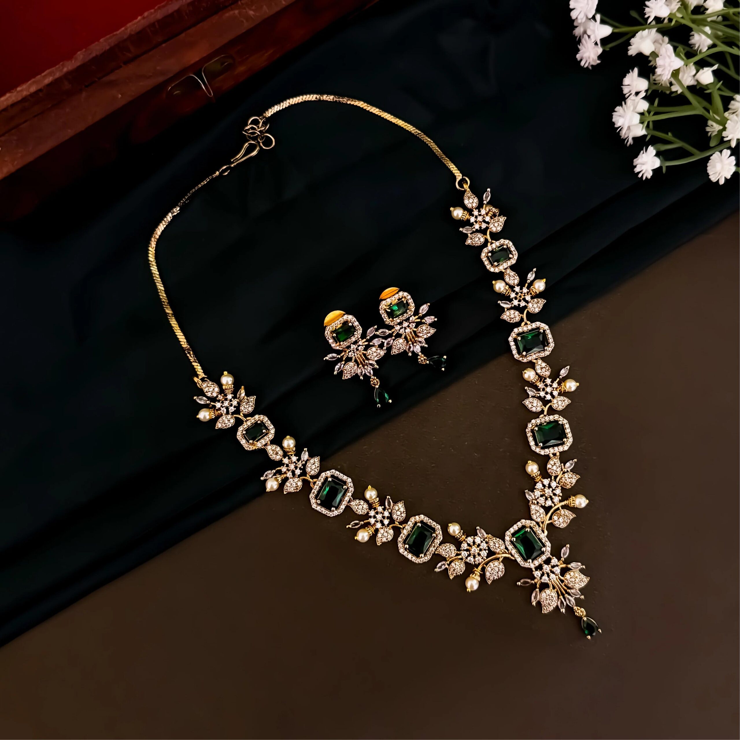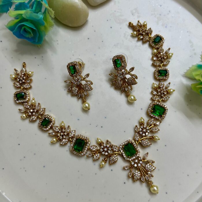 Home All Products Shreshtha Navratan AD Necklace Set (Green)