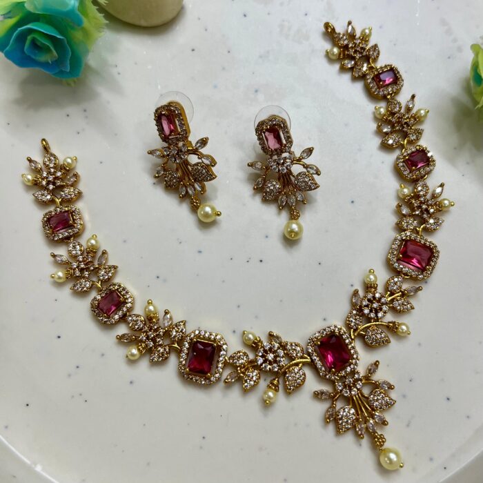 Home All Products Shreshtha Navratan AD Necklace Set (Ruby Red)