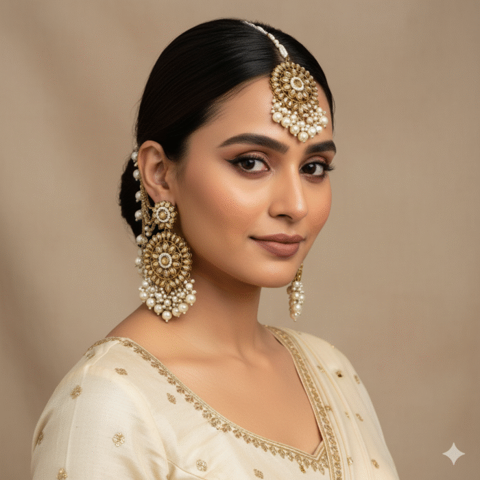 Roshnee Jhumka With Mangtika (White) ₹800.00 Original price was: ₹800.00.₹600.00Current price is: ₹600.00.