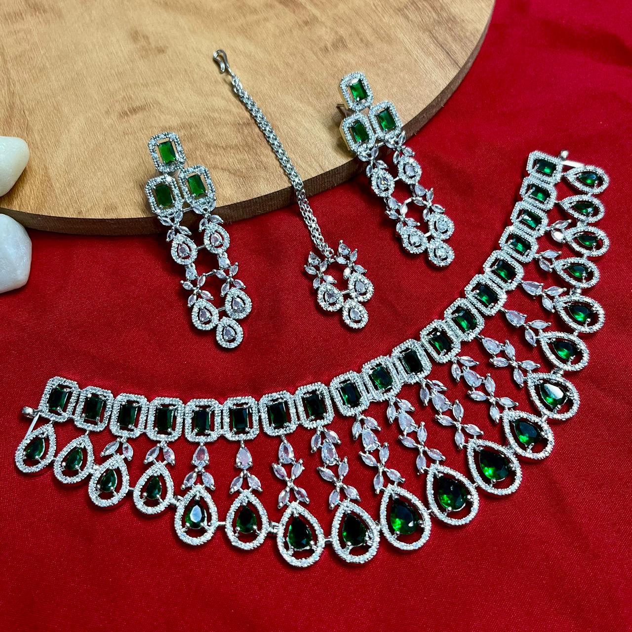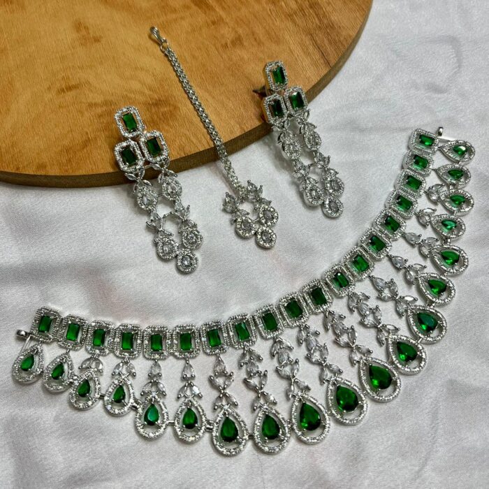 Home All Products Tanvi American Diamond Choker Set (Green)