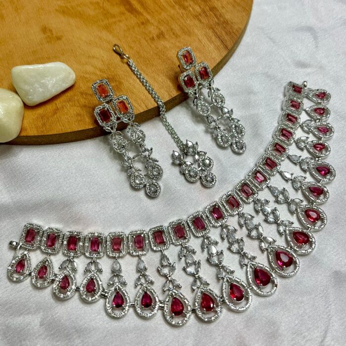 Home All Products Tanvi American Diamond Choker Set (Ruby Red)