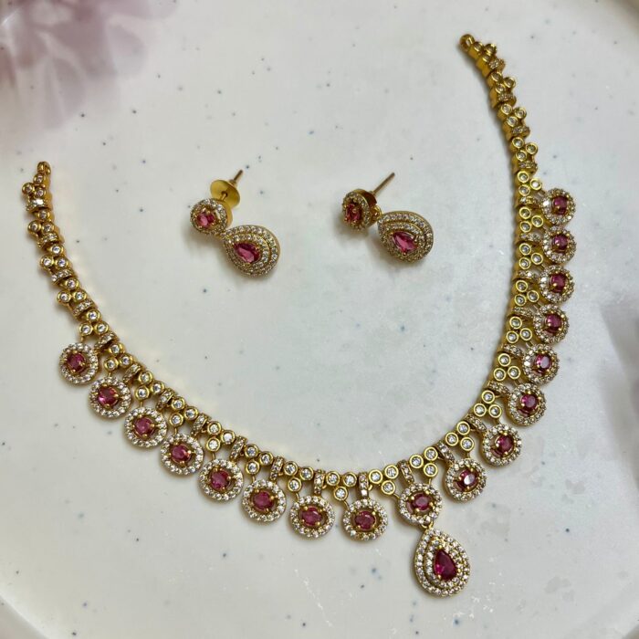 Home All Products Tulsi AD Necklace Set – Mehendi Polish (Ruby Red)