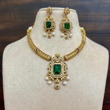 Aarya AD Necklace Set – Mehendi Polish (Green)