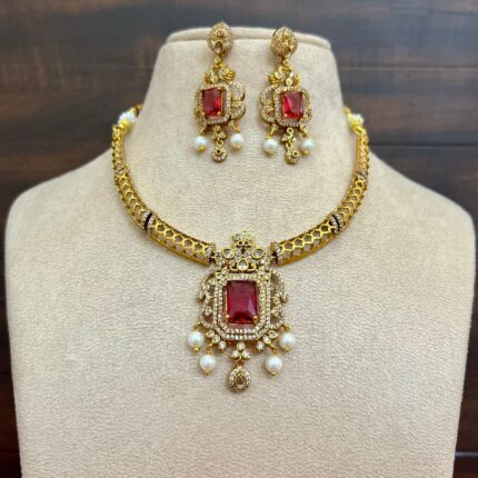 Aarya AD Necklace Set – Mehendi Polish (Ruby Red)