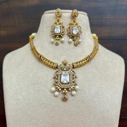 Aarya AD Necklace Set – Mehendi Polish (White)