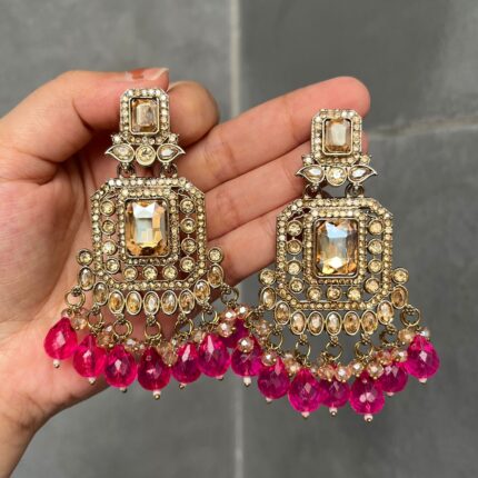 Aadikha Reverse AD Jhumka Earrings (Pink)