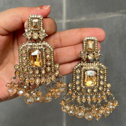 Aadikha Reverse AD Jhumka Earrings (Yellow)